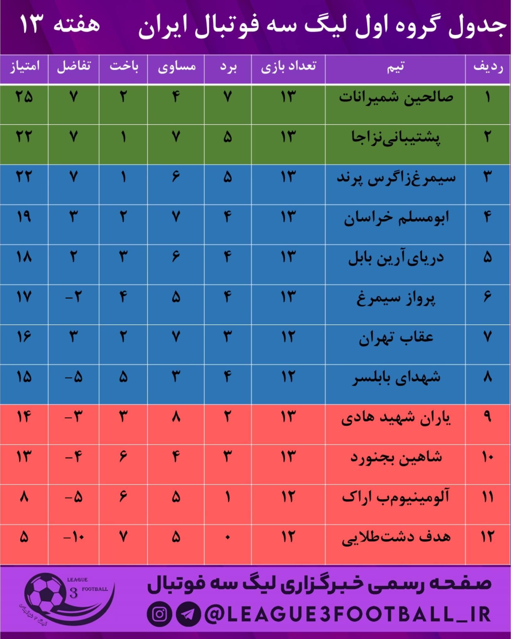 جدول ردهبندی گروه ب فوتبال دسته یک باشگاههای کشورردیفتیمبازی هابردمساویباختگل زدهگل خوردهتفاضل گلامتیاز