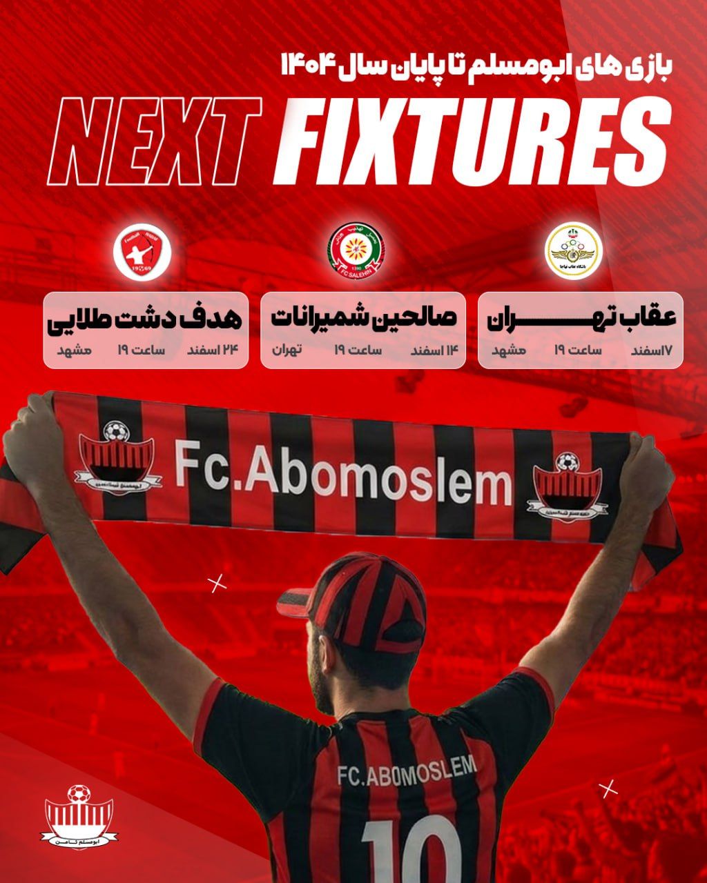 تا پایان سال ۱۴۰۴، سه دیدار مهم در انتظار ابومسلم ثامن است :: باشگاه فرهنگی ورزشی ابومسلم خراسان